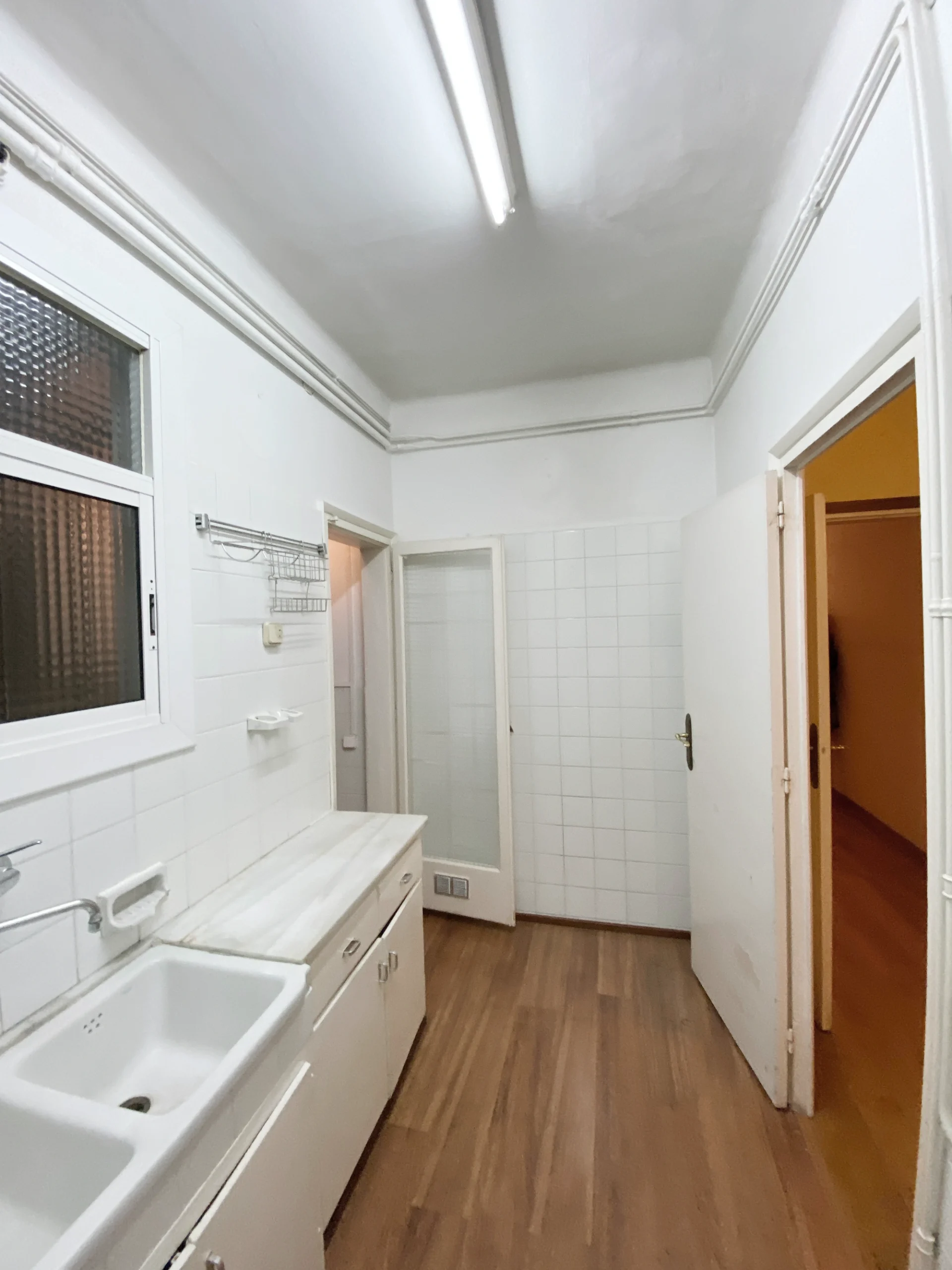 El pis objecte d’aquesta reforma construït l’ant 1963, complia amb tots el condicionants, tenia un gran passadís en forma de L, pintat amb un estucat color groc que donava a les habitacions, banys, cuina i al final de tot hi trobàvem la sala. El que havíem de aconseguir amb la reforma es fer desaparèixer aquet llarg passadís i dotar de llum natural tots els espais.