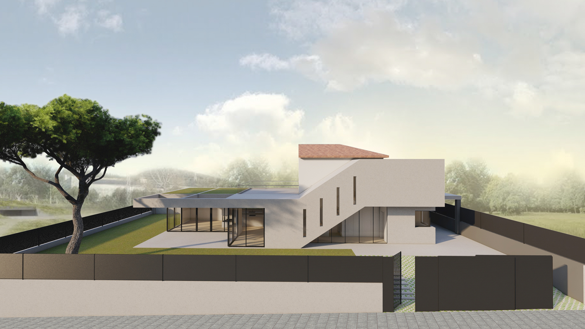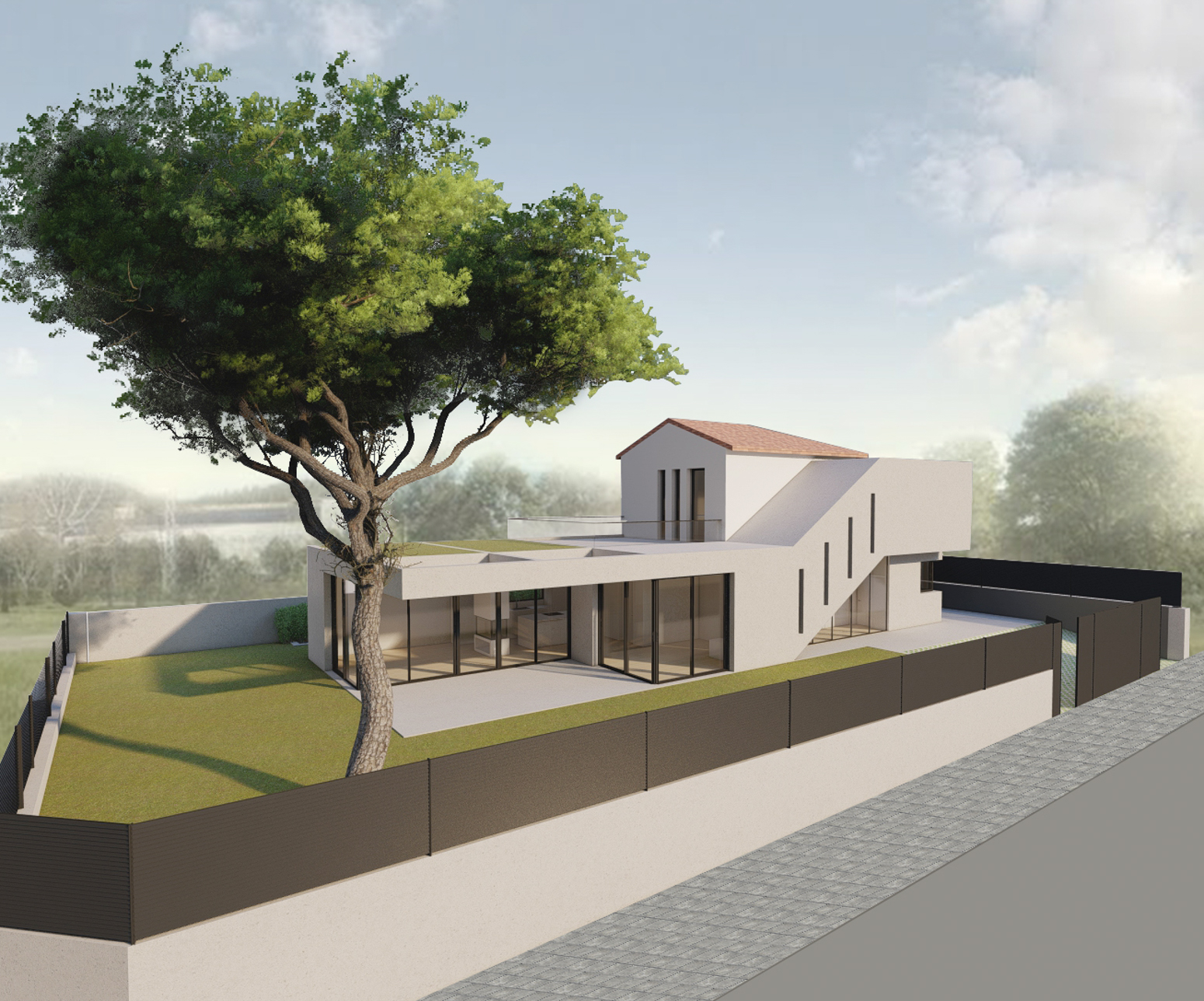 Located on a plot occupied by an existing two-storey detached house (ground and first floor) built in 1970, we were commissioned to design its refurbishment and extension. Although the original house held no remarkable architectural value, the owners wished to preserve the main rectangular volume.